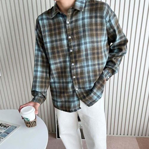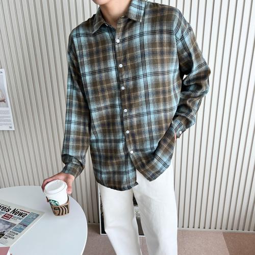 [셀럽하우스]남자 DRHW4376 6컬러 하이틴 오버핏 가을무드 체크남방 셔츠