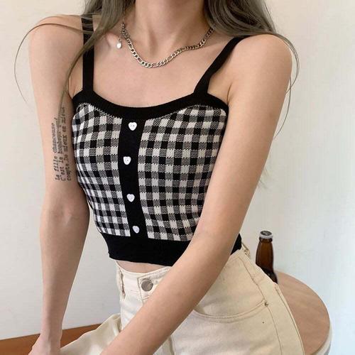 [셀럽하우스]여성 MULJ7896 니트 체크민소매 뷔스티에 크롭 하이틴 페미닌룩