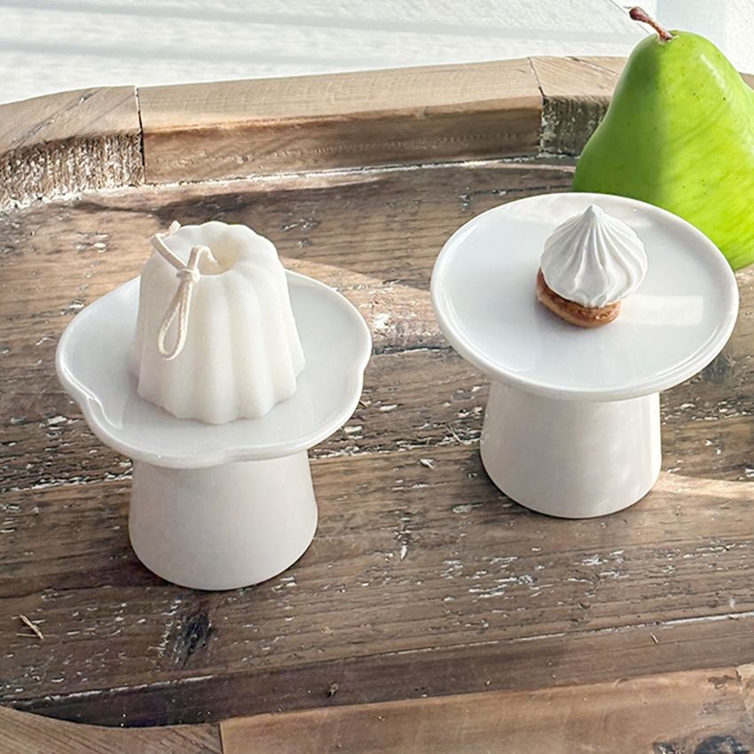 심플 유광 모양 굽접시(꽃/원)다과접시,한정식접시,오마카세접시
