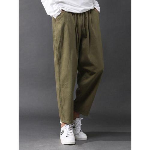 남자 항아리바지 폭 넓은 린넨 통바지 편한 밴딩 바지 PaO2+5BhF