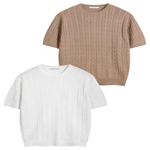 [해리슨][해리슨] 1+1 케이블 라운드 반팔 니트 WBTM510 WSPF1497