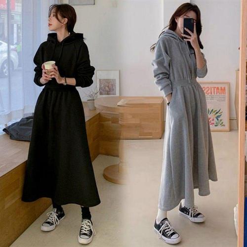 여성 꾸안꾸 라운드넥 맨투맨 허리라인 A라인 롱원피스 데일리