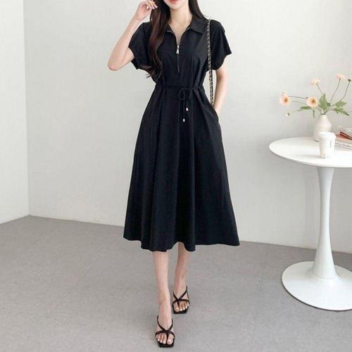 [오너클랜]인기상품 여성 미디 집업 원피스 허리 조절 A라인 데일리룩 [WFLI1YB_260227]