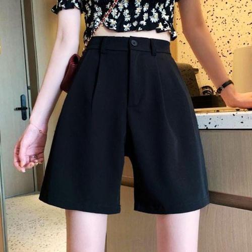 [에이치플러스몰]하이웨스트 5부반바지 단추 허리밴딩 팬츠 심플 바지