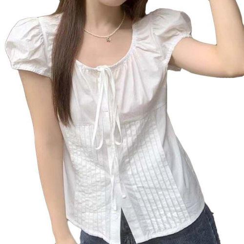 [에이치플러스몰]여자 데일리룩 여름 블라우스 신상 스트랩리본 셔츠