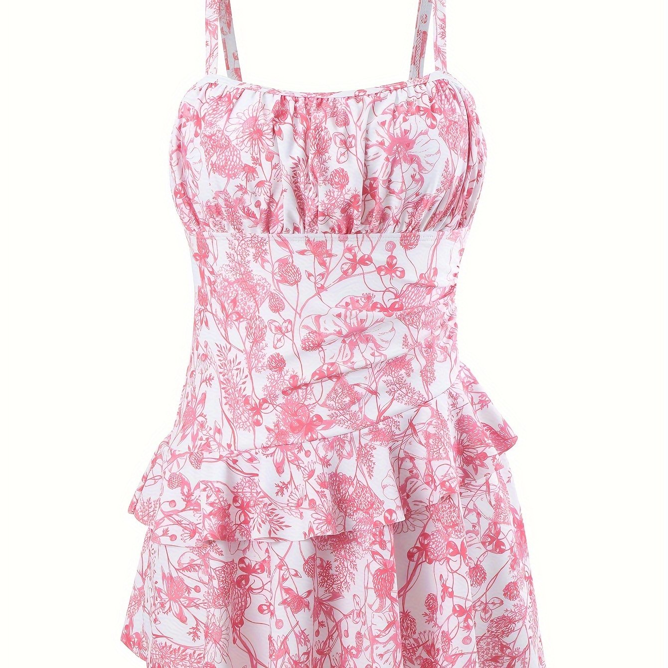 TEMU 캐릭터와 식물 그래픽 2피스 수영복, 어깨끈이 있는 원피스 수영복과 커버업 스커트, 여성용 수영복 및 리조트웨어
