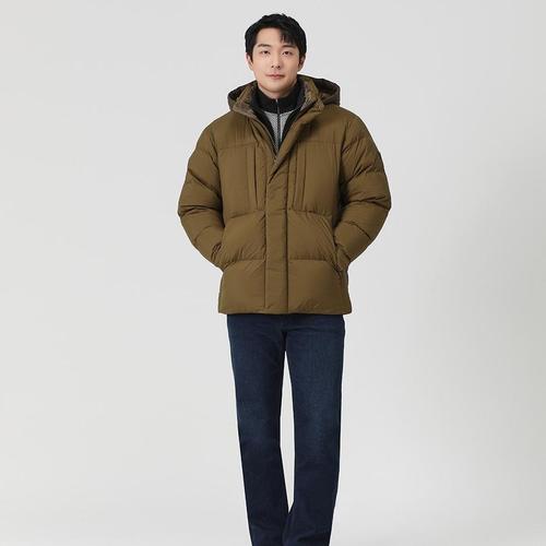 헤지스 [25FW] [경량헤비구스] 브라운 후드 탈착 카라코람 구스다운 패딩 (HZJU5D504W2) 344625