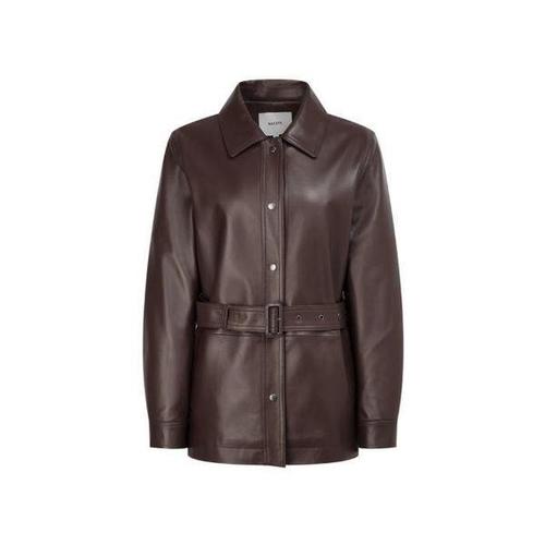 [셀러허브_여성트랜드패션]헤지스 여성 벨티드 리얼 레더 자켓 다크브라운 HSJA6A106W3
