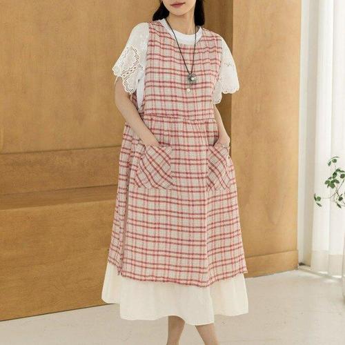 [디얼마미][디얼마미] 헬렌 린넨 체크 원피스 /마담 미시 중년 여성 빅사이즈 40대 50대
