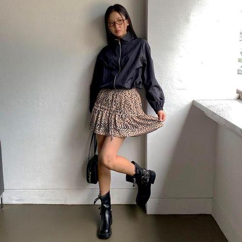 [다잇템]여성 발랄 호피 사랑스러운 일상 쁘띠 스커트