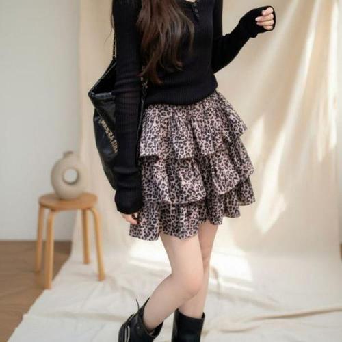 [셀러허브_여성트랜드패션]여자 티어드 호피 발랄 클래식 쁘띠 스커트