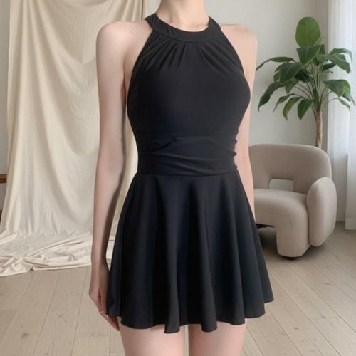[옷자락]여성 홀터넥 플레어 스커트 체형 보정 원피스 수영복