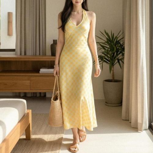 [옷자락] 여성 홀터넥 맥시 드레스 데이트룩 휴양지 원피스