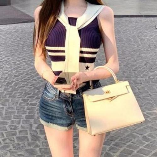 [셀러허브_여성트랜드패션]가벼운니트 여 여성패션 크롭나시 트렌디룩 홀터넥 썸머룩 여름코디 뷰티코드 ..