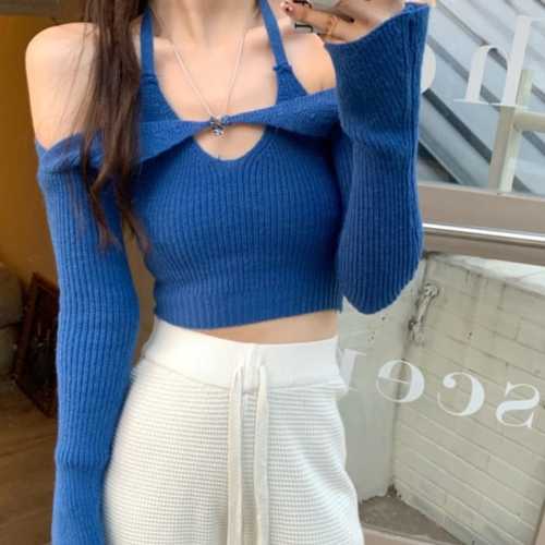 슈팅스타 / 유니크 니트 홀터넥 나시 + 니트소매 세트