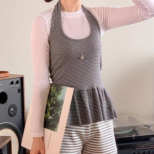 [하프클럽/]홀터넥 스트라이프 크롭탑민소매티