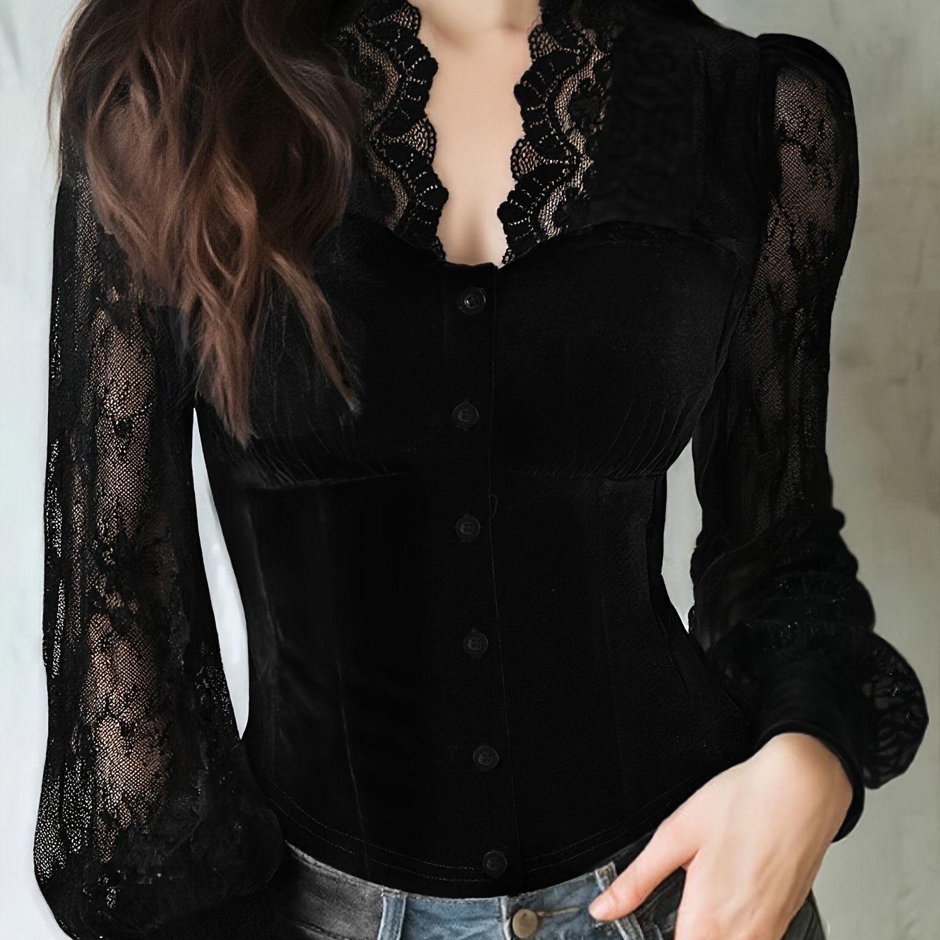 TEMU 봄/가을 패션 여성용 단색 레이스 패치워크 브이넥 긴소매 우아하고 활용도 높은 가디건 상의
