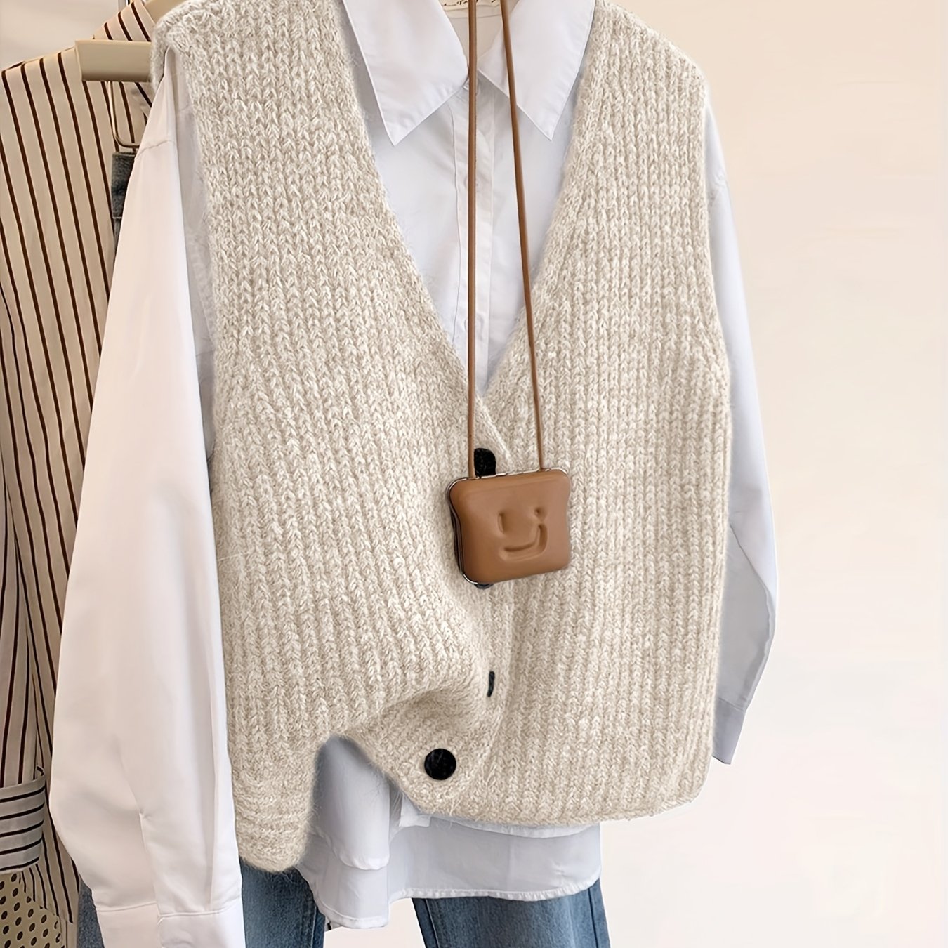 TEMU 고급 한국식 우아한 스웨터, 레이어링 버튼 솔리드 컬러 V넥 가디건 코트, 다용도 패셔너블 빈티지 가디건 베스트
