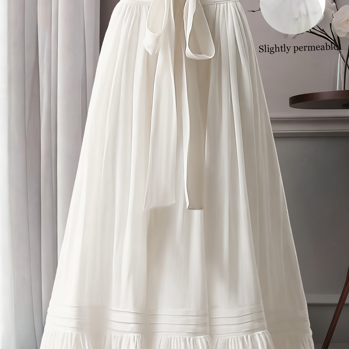 TEMU 우아한 화이트 러플 밑단 롱 스커트 | 단색, 하이웨스트, 플레어 A라인, 봄/여름용 케이크 스커트