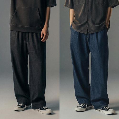 [화이트빌딩]남성 핀턱 와이드 데님 여름 밴딩 고무줄팬츠