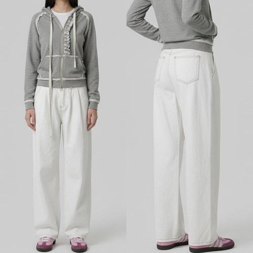 [어뉴브로스]화이트,블랙여성 워싱 와이드 캐주얼 면바지 코튼 팬츠 [ANBP_6001]