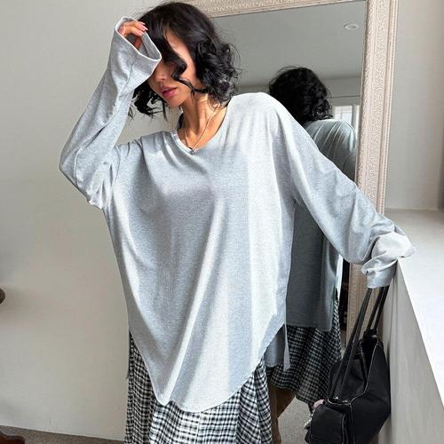 [옷자락]여자 힙커버 언발 루즈 박시티 라운드 아방핏 티셔츠