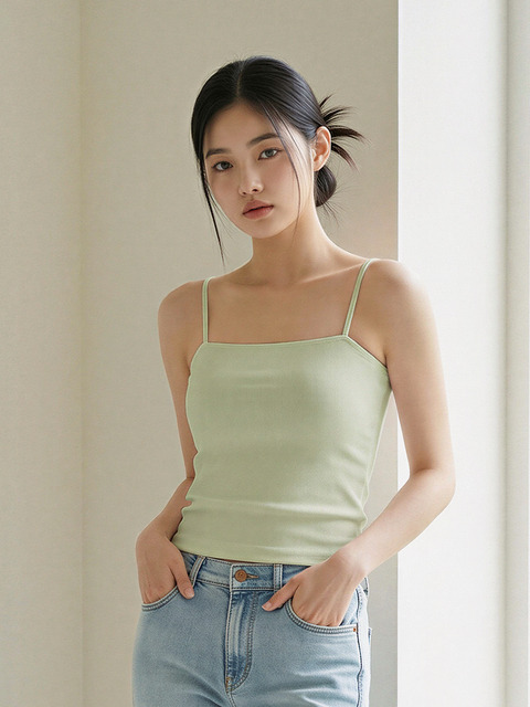 [힙핑크] 크림 모달 브라캡 크롭 끈 나시탑 (일체형패드)