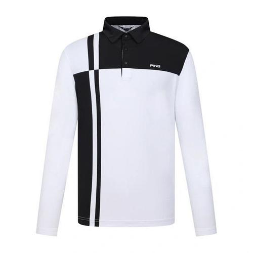 [핑]골프 남성 쿨링 블럭 배색 카라 긴팔 티셔츠 111F2TO401_WH_DG