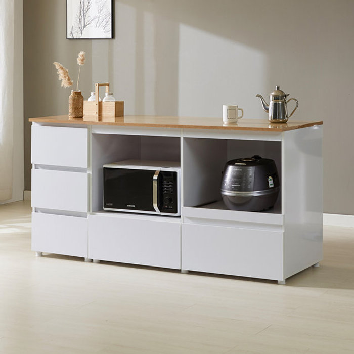 나무뜰 시오 E0 이지수납 광파오븐 인조대리석 아일랜드 홈바 식탁 렌지대 수납장 1600X600 YDF276