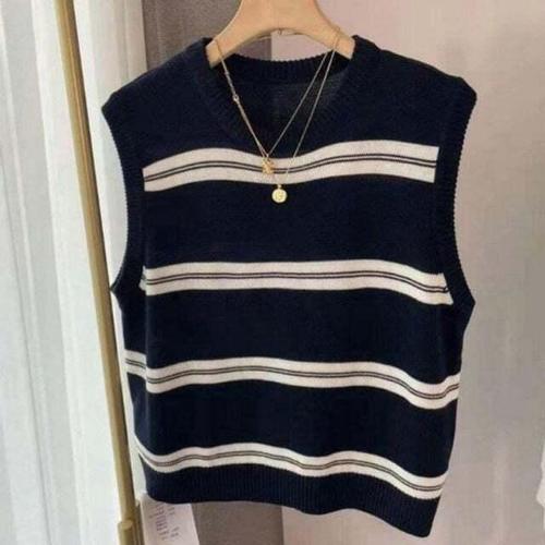 [셀럽하우스]여성 GEHQ1980 스트라이프 추천 니트 조끼 라운드넥 니