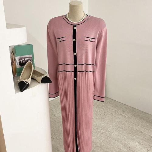 [샵앤]국산 여성 라운드 밑단 배색 롱원피스 ARA-WDR-4948-핑크