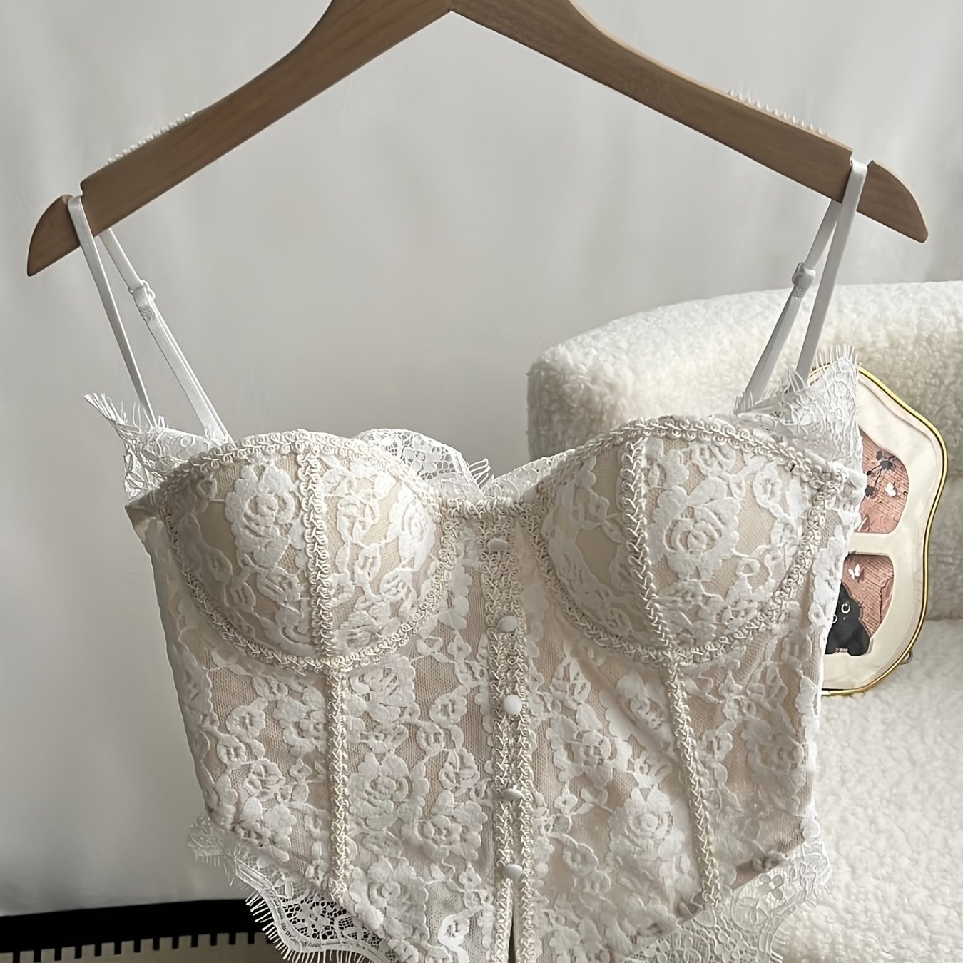TEMU 2026 봄/여름 신상품 아카데믹 스타일 패치워크 슬림핏 몸매 보정 레이스 본ιν 스파게티 스트랩 웨이스트 신처 탱크탑, 프렌치 스타일 아우터웨어