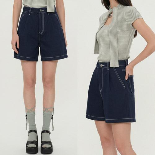 [센트럴몰]데일리 여성 반바지 4부 스티치 핀턱 코튼 A라인