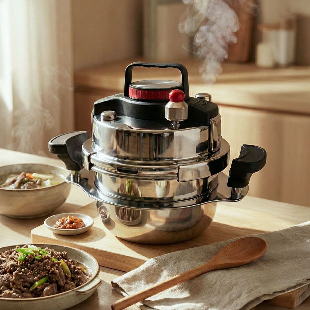 굿밥 국내생산 스텐레스 초고압 통3중 압력밥솥 1-4인용/누룽지 가마솥 압력솥 미니밥솥