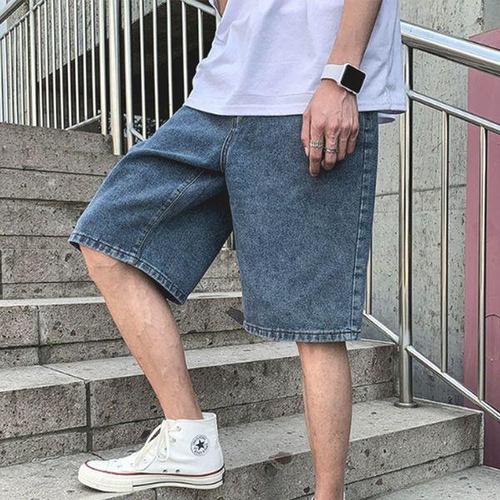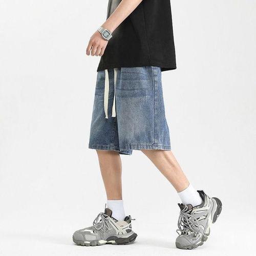 Asure 남자 여름 청 반바지 빈티지 와이드 밴딩 5부 데님 반바지