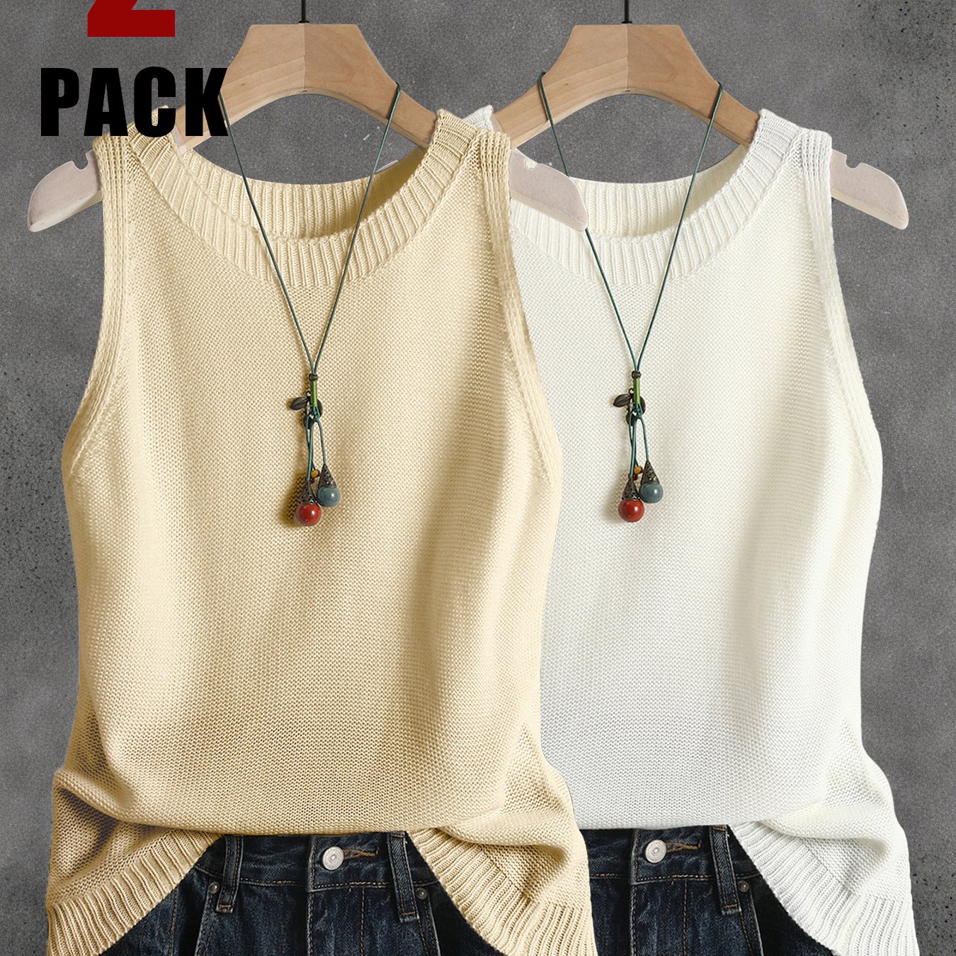 TEMU TD8007UT8 2개입 프렌치 레트로 문학 단색 스몰 탱크 탑 여성용 봄 여름 가을 신상 아우터 필링 민소매 탑 의상