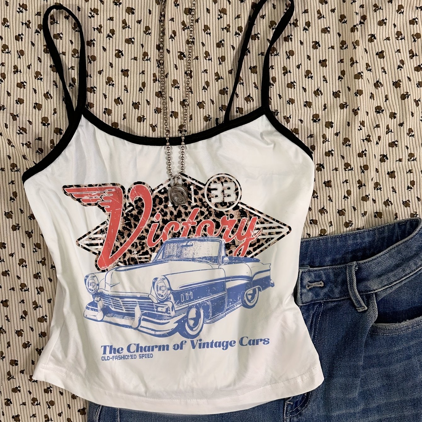 TEMU 빈티지 자동차 프린트 민소매 캐미솔