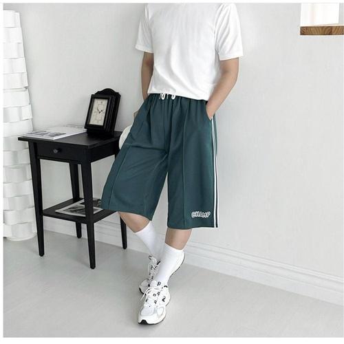 남자 버뮤다 반바지 여름 트레이닝 밴딩 와이드 7부 반바지 WFJN3FX
