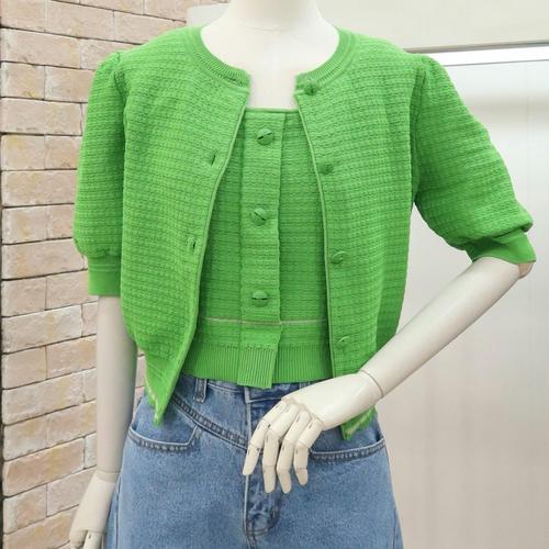 [JJ JIGOTT][JJ지고트]글리터 라인 퍼프 슬리브 가디건 GP4A1CD321_DG