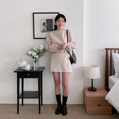 [옷자락] 여자 라운드넥 절개 블라우스 A라인 스커트 세트