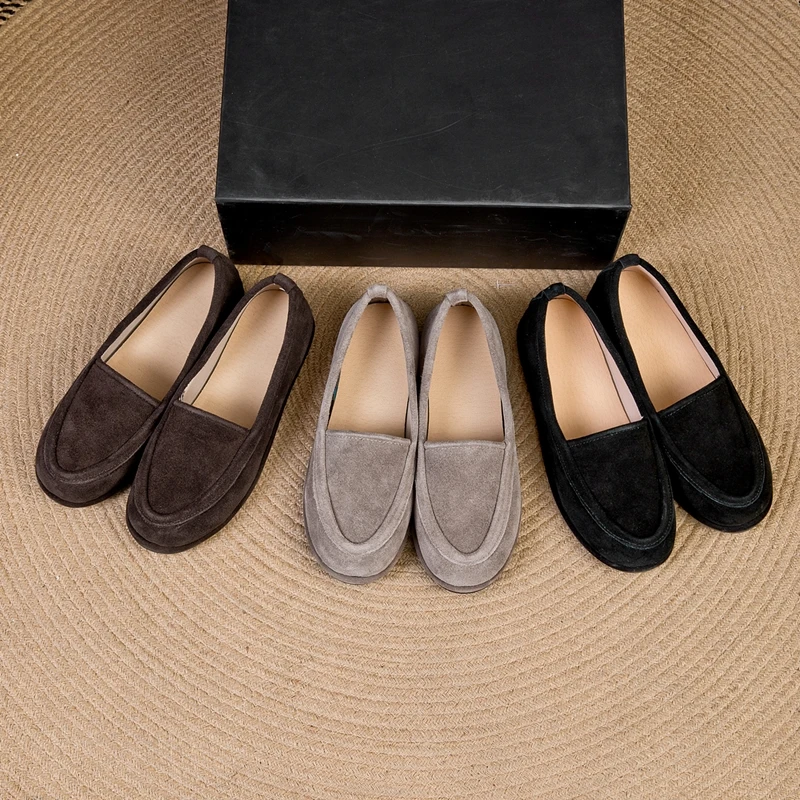 2025 여성 가죽 토 분리 로퍼 플랫 편안한 슬립온 통기성 캐주얼 신발
