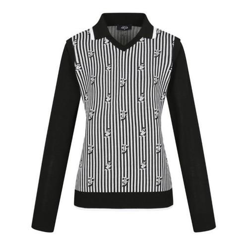 [팬텀]봄 여성 로고 자가드 카라 니트 / 221E1SR201_BK_IC_IC