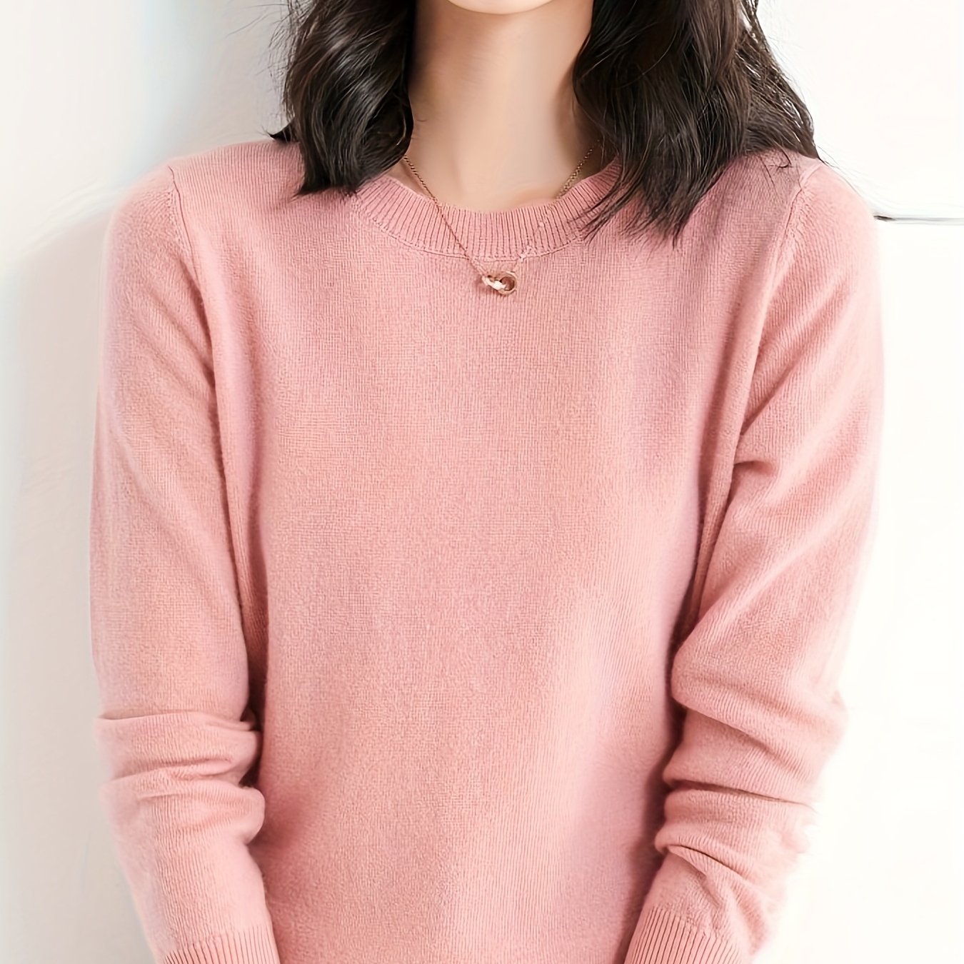 TEMU 가을 겨울 솔리드 컬러 긴팔 풀오버 스웨터 - 우아한 패션 여성용 라운드넥 따뜻한 니트웨어, 부드러운 감촉 슬림핏 베이스 레이어