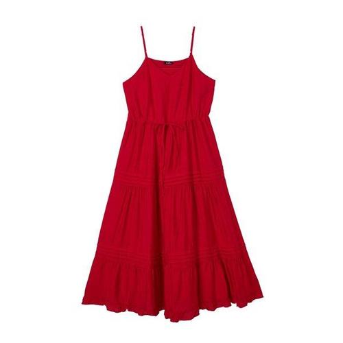 TEMU 여성 솔리드 컬러 여름 민소매 드레스 (벨트 포함) | 우아한 크루넥, 플레어 밑단, 핏 앤 플레어 실루엣, 신학기에 완벽