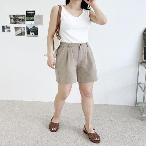 [에이치플러스몰]13여성 베이직 반밴딩 코튼 치노 핀턱 반바지