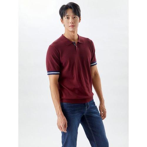 [지센(남성)]면 100% 포인트 반팔 카라 니트 MCKTO341_RE