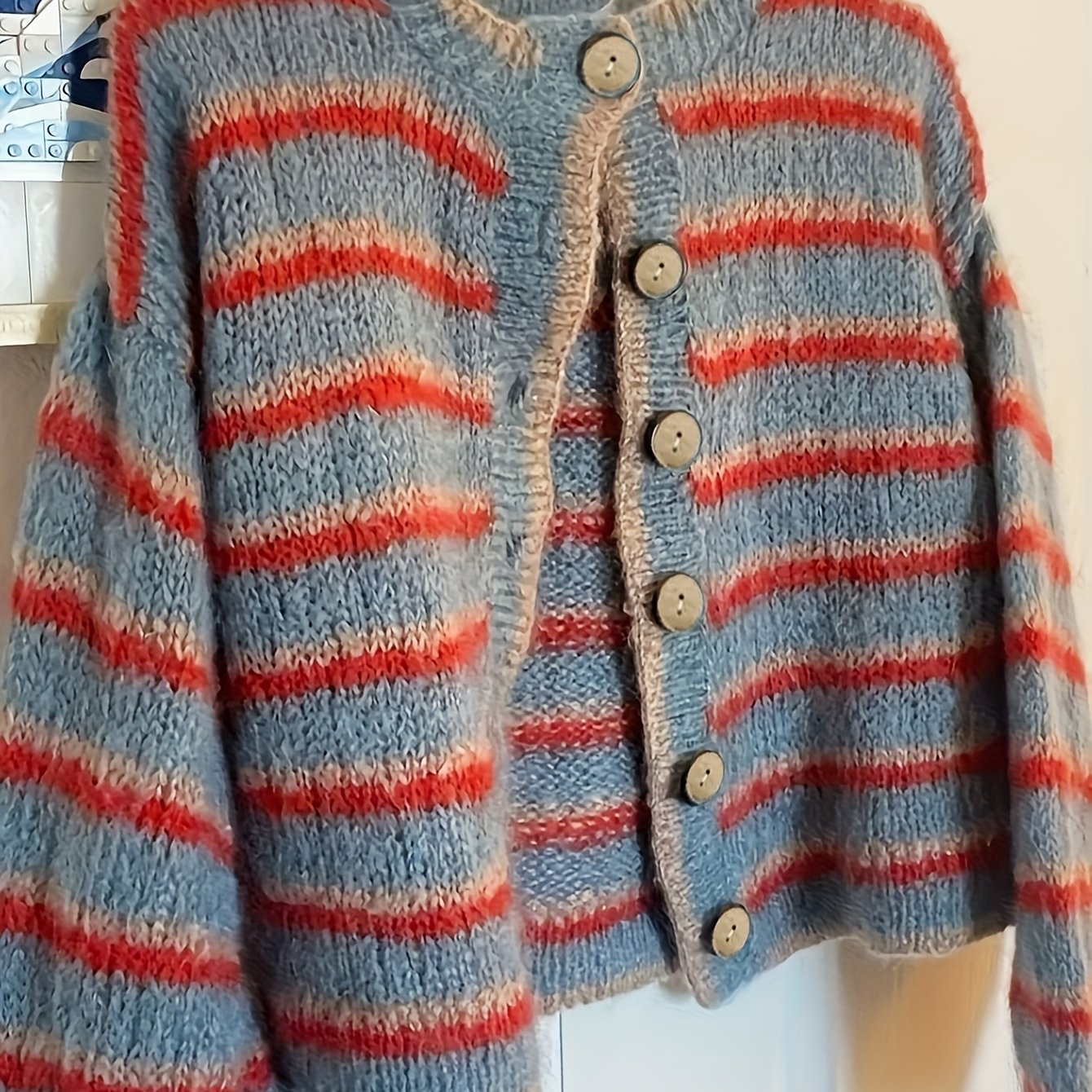 TEMU 컬러풀 버튼 다용도 스웨터, 봄가을 라운드넥 대비 컬러 가디건, 긴소매 아우터웨어