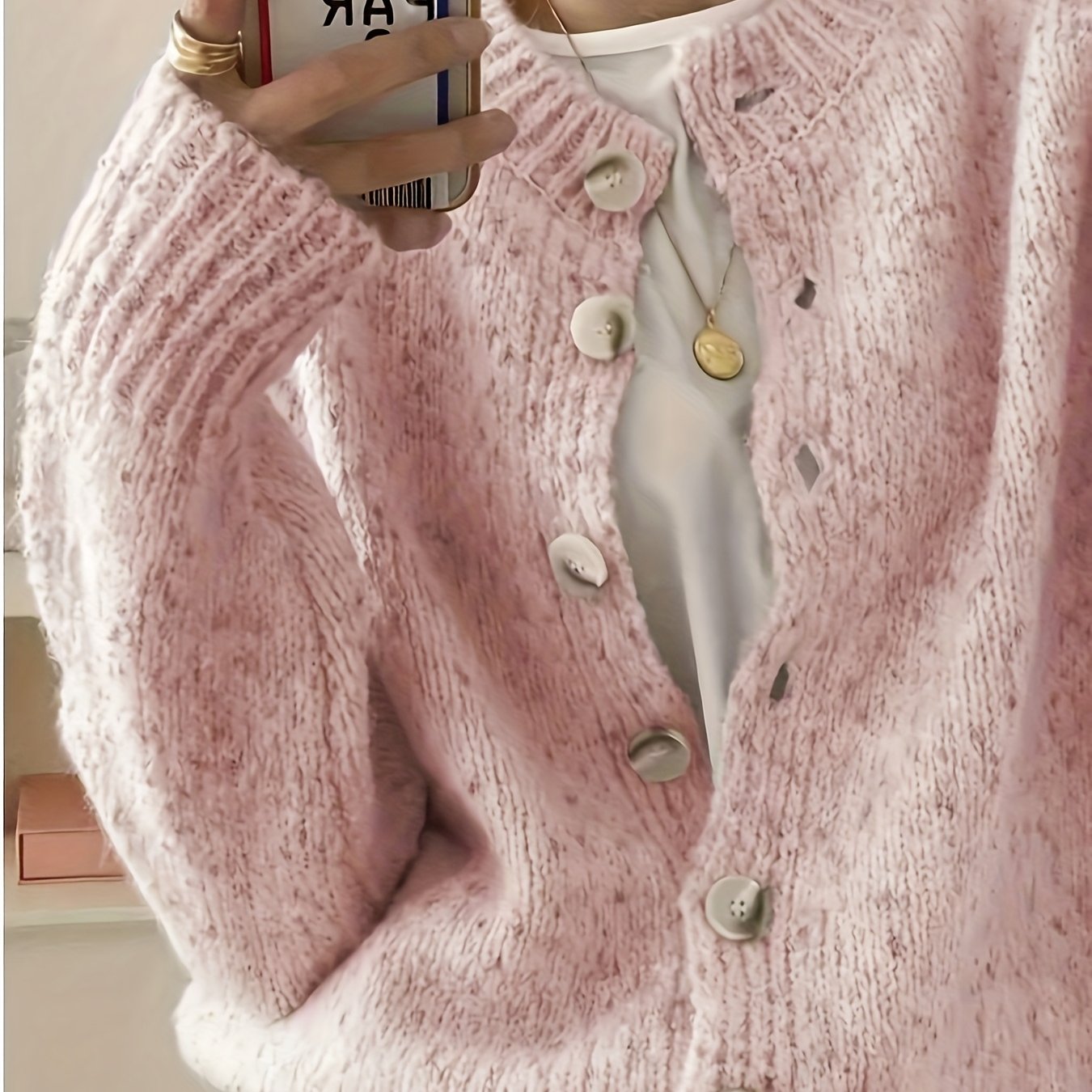 TEMU 여성용 엘레강스 패션 라운드 넥 긴소매 가방 カーディ건 스웨터, 단색 폴리에스터, 데일리웨어용 버튼업 가방 カーディ건 스웨터, 부드럽고 편안한 가을/겨울 원단