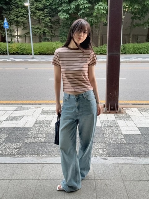 [드파운드] 스트라이프 슬림핏 티셔츠 - 레드