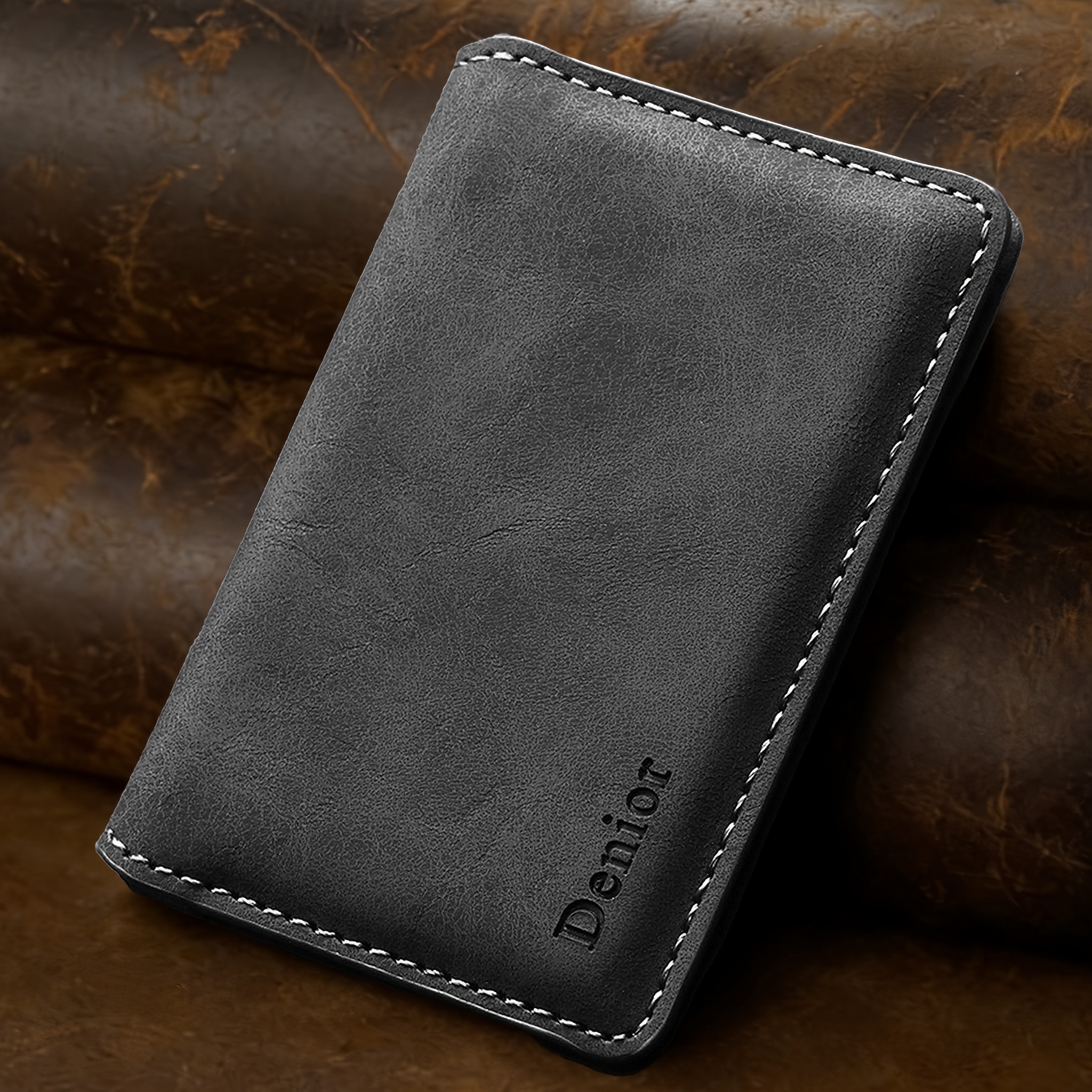 TEMU 남성용 천연 가죽 양장 지갑, 부드러운 소재로 제작, 섬세한 엠보싱 패턴이 있는 컴팩트한 남성용 간편하고 우아한 가죽 지갑, 가볍고 휴대하기 쉬움